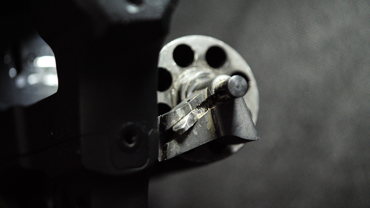 The barrels aren’t the only thing doubled. There are two independent firing pins, too. Although revolvers are known for their reliability, even if you had a failure with one chamber or one firing pin, the other would still fire.