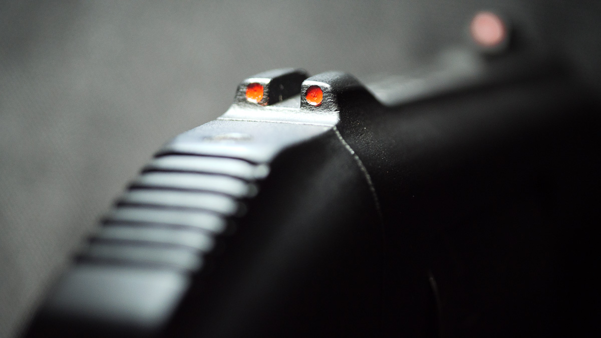 The Volleyfire also features the first Glock-style trigger safety on a revolver and the first two-fingered grip on a trigger. The 9-pound trigger is pretty normal for double action guns, but those with smaller hands or less grip strength will find pulling with two fingers makes the trigger feel much lighter. Interestingly, the trigger must be used with two fingers–if you try to fire with one, then your middle finger interferes with the trigger against the grip.
