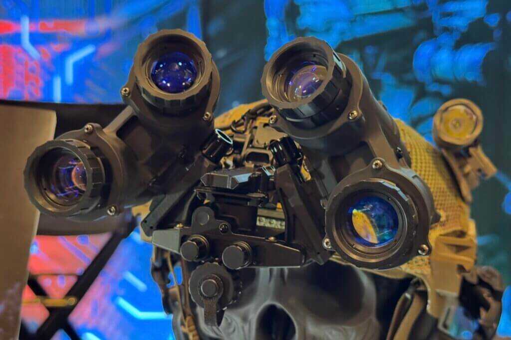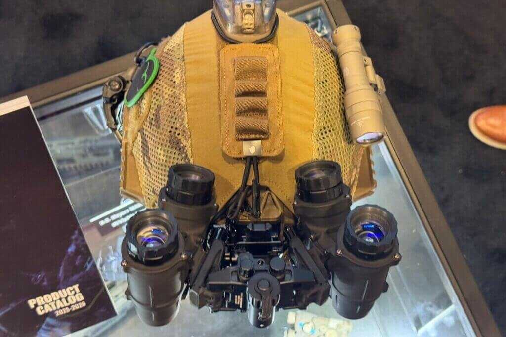 Steele Industries partnered with Nocturn Industries to license its articulating panoramic bridge patent. That decision drives the NightHawk-Pano’s core feature set. The system delivers a 100-degree field of view, slightly wider than many current panoramic goggles.