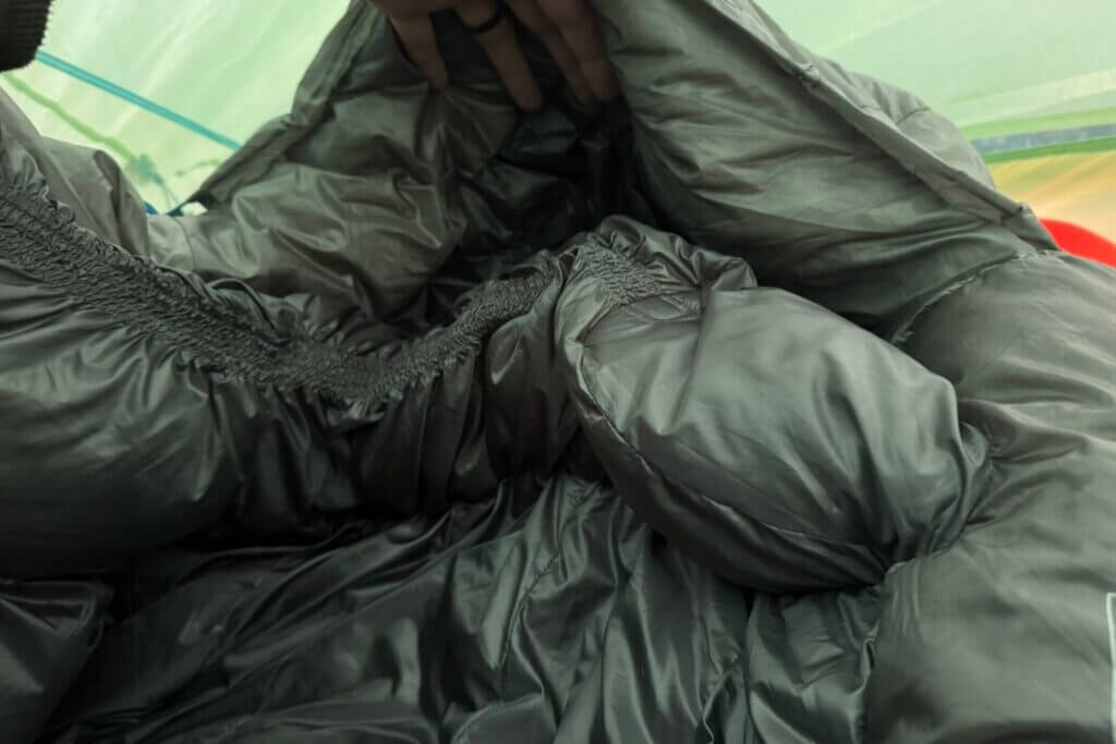 Even at 6’2″ I had some wiggle room. I am also a side sleeper and had no issues rotating around and finding plenty of warm comfortable positions to fall asleep in. One thing I did have trouble with was finding the zipper when it was fully zipped up in the middle of the night. The bag sort of rotated around on me. Due to the double-sided zipper though, I was able to find the pull string on the inside and open it back up.