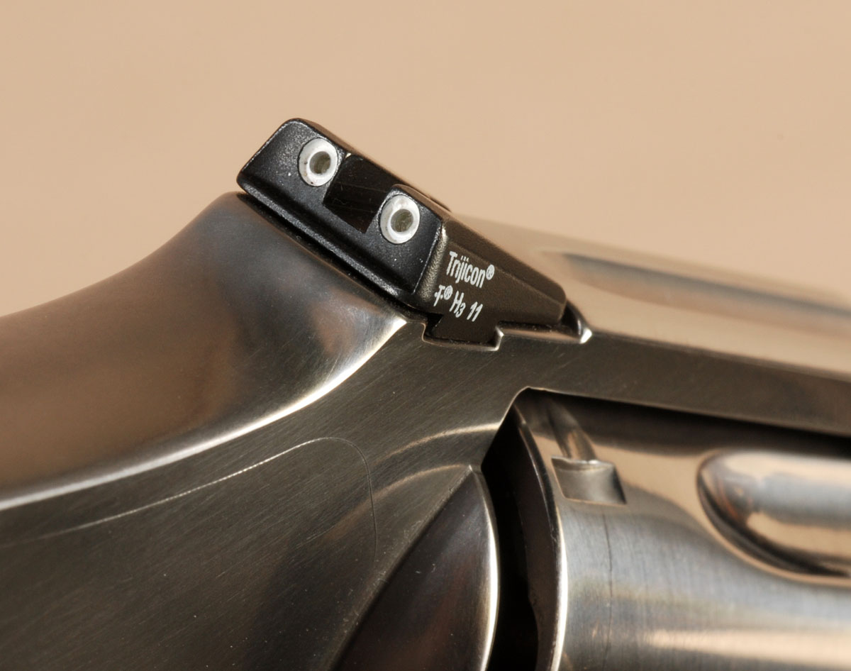 One handicap with most J-frame revolvers has always been the hard-to-see sights. The standard front sight is a sloped ramp that is integral to the barrel. The rear aperture is a notch and channel on top of the frame. The combination of the .12” wide ramp and shallow notch make finding the sights, under stress, a challenge. In recent years, a few models have been offered with a dovetailed XS front sight. While this is an improvement, it does not resolve the rear sight issue.