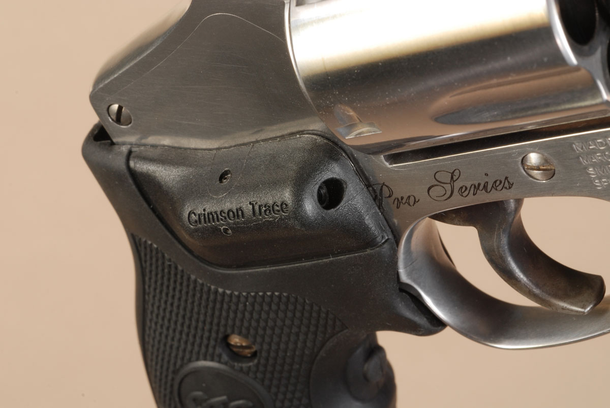 The author installed Crimson Trace Laser Grips on the 640 Pro.  The extended length and padded backstrap aided in controllability and comfort.