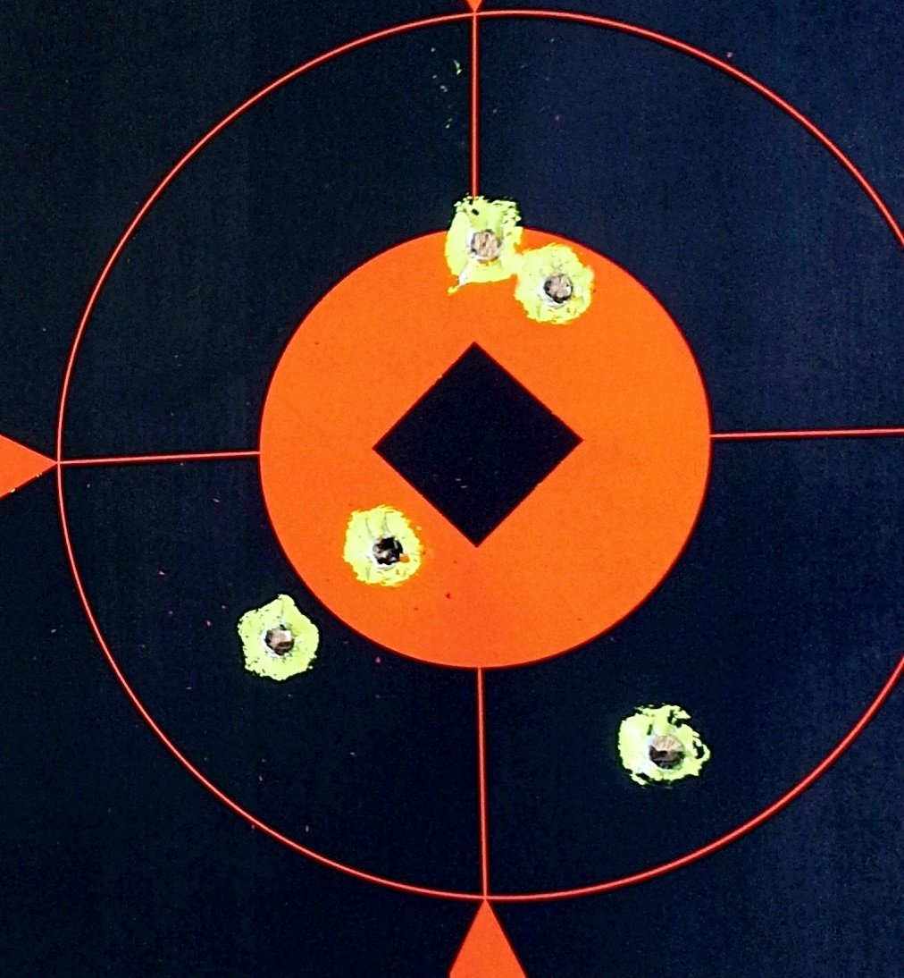 *Groups fired from an unsupported standing position at a range of 7 yards.