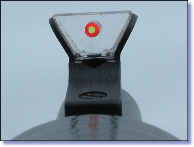 This is a really new, very old sight idea and I, for better or worse am responsible for it. One day, while having the grand privilege and delight to have free run of one of the finest arms collections on Earth, I discovered a sight. This was on a pretty little cased English rook rifle that was fitted with an original Lyman tang sight and that had a big, odd steel disk on top of the barrel just behind the normal front sight. When I rotated the cover away from the canister it uncovered a glass disk. The disk folded up into vertical position and revealed a red dot in its center. Yes, there is nothing new in the world, for this floating red dot was made in the 1880s. Before me was a red dot sight that floated in the open air, and offered one of the most amazing sight pictures I have ever encountered, when used in conjunction with the large Lyman aperture. This concept spawned the “new” Brockman front sight, that is essentially a floating colored dot; but now in a much more rugged and simple setting than the original British rook sight.