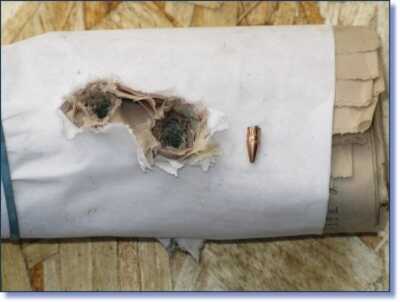 The HMR has three kinds of bullets,(with another I have not tried a non-lead core “green bullet.”) the same 17 grain V-max that is loaded in the Mach 2, a 20 grain XTP hollow point and a 20 grain FMJ. The 17 grain bullet is a scatter-pieces proposition for the first 75 yards. It does at 100 yards what the Mach 2 does more or less at 25 yards; while its 200-yard impact is much like the HM2 at 100. Going back to my bad experiences of the past, now the .17HMR can reliably expand on and kill small varmints out to 200 yards. The 20 grain hollow points expand a bit more like a larger caliber bullet at 50 and 100 yards, but they are more or less done performing in the 150 yard realm. The 20 grain FMJ is interesting. The velocity is low enough not to deform the bullets and for the first two inches of penetration they go very straight and make small holes. (Yes, I think they would make very fine edible-squirrel bullets, but I would not trust them on cotton tails.) Like most other pointed, non expanding bullets the FMJs are likely to turn sideways after a bit of initial straight penetration. This actually increases the wound channel, and results in an overall penetration very similar to the V-Max or XTP bullets. If they gave me a magic wand, I would make a 17 or 20 grain FMJ with a flat nose about 1/3 of the bullets diameter. This would make it track straight, and the splash off that flat would make it a good killer on small game and even perhaps coyote or foxes.