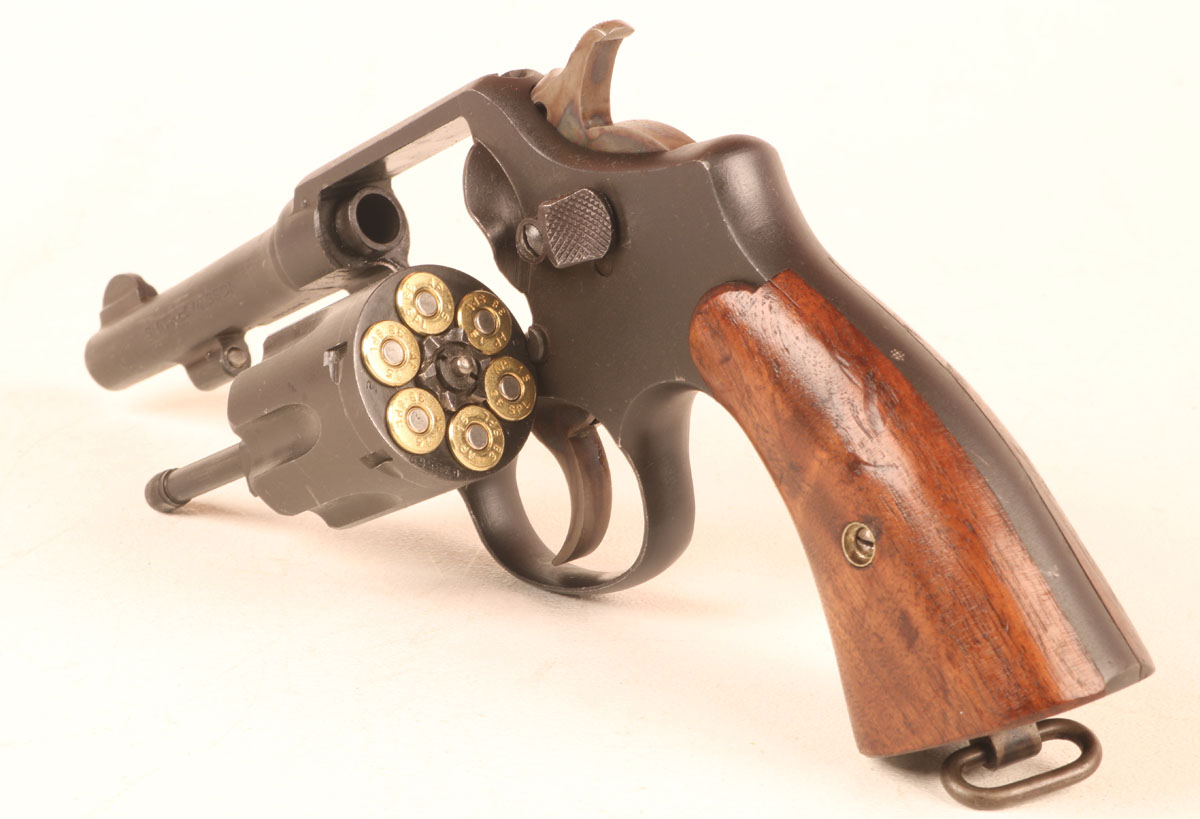 Open the cylinder to the left and drop in six rounds. Snap the cylinder back in place, and the gun is ready to fire. The double action trigger is legendarily smooth. The single action pull is sufficiently short and crisp as to surprise you. To unload the gun activate the cylinder release, pivot the cylinder clear, and press the ejector rod. The star-shaped ejector ejects all six rimmed cases simultaneously.The Smith & Wesson Victory .38 - A Cop Gun Goes to War (#1 - Allied Small Arms WWII)