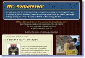 Mr. Completely, another veteran blogger, blogs about competition shooting. Via. his blog he organizes a monthly e-Postal match (“e” meaning that the targets are scanned and emailed to the judge). He also organizes the annual Gun Blogger Rendezvous.