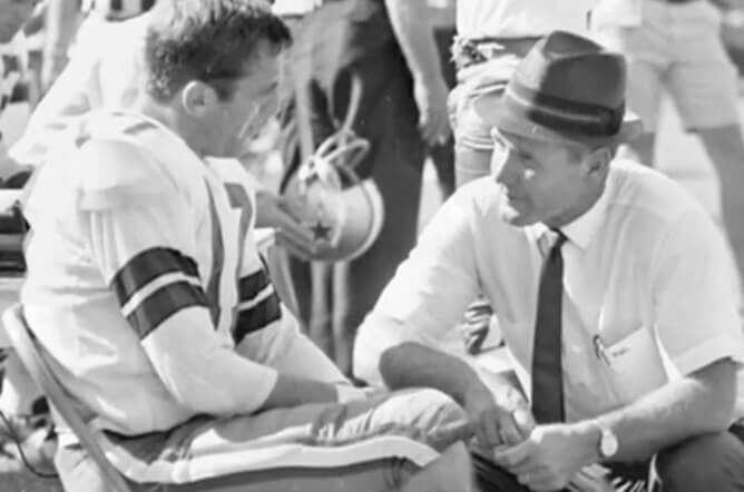 By the fall of 1946, the combat veteran Tom Landry was back home and ready to resume his life. He entered the University of Texas as an industrial engineering student and played fullback and defensive back on the football team. After receiving his bachelor’s degree, he went on to earn his master’s in industrial engineering from the University of Houston. Afterward he played professional football for the New York Giants, being named All-Pro in 1954. However, Tom Landry’s real skill was on the sidelines.