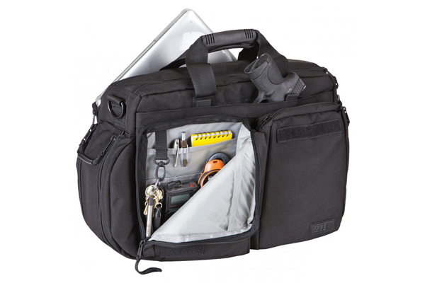 I got a carry bag from Dillon and use it all of the time. It passes for a “standard” laptop case and fits my little Google Chromebook in that application. The other compartment carries necessities like a hairbrush, umbrella, power cords and the like. The “secret” middle compartment handles my Colt Defender and two spare magazines. I have had this bag on my shoulder when shaking hands with governors, senators and congressmen and nobody ever noticed.