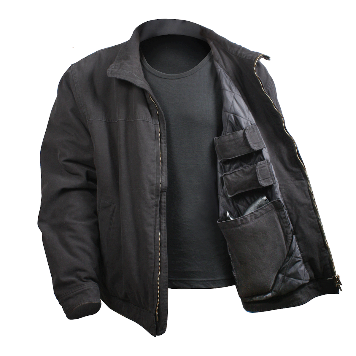 Carrying a handgun in the compartment of a concealed carry jacket is off-body, even though you wear the jacket and your gun is very close and protected. I classify it as “off-body” because the gun is merely hidden or covered inside the jacket as opposed to attached to your person.