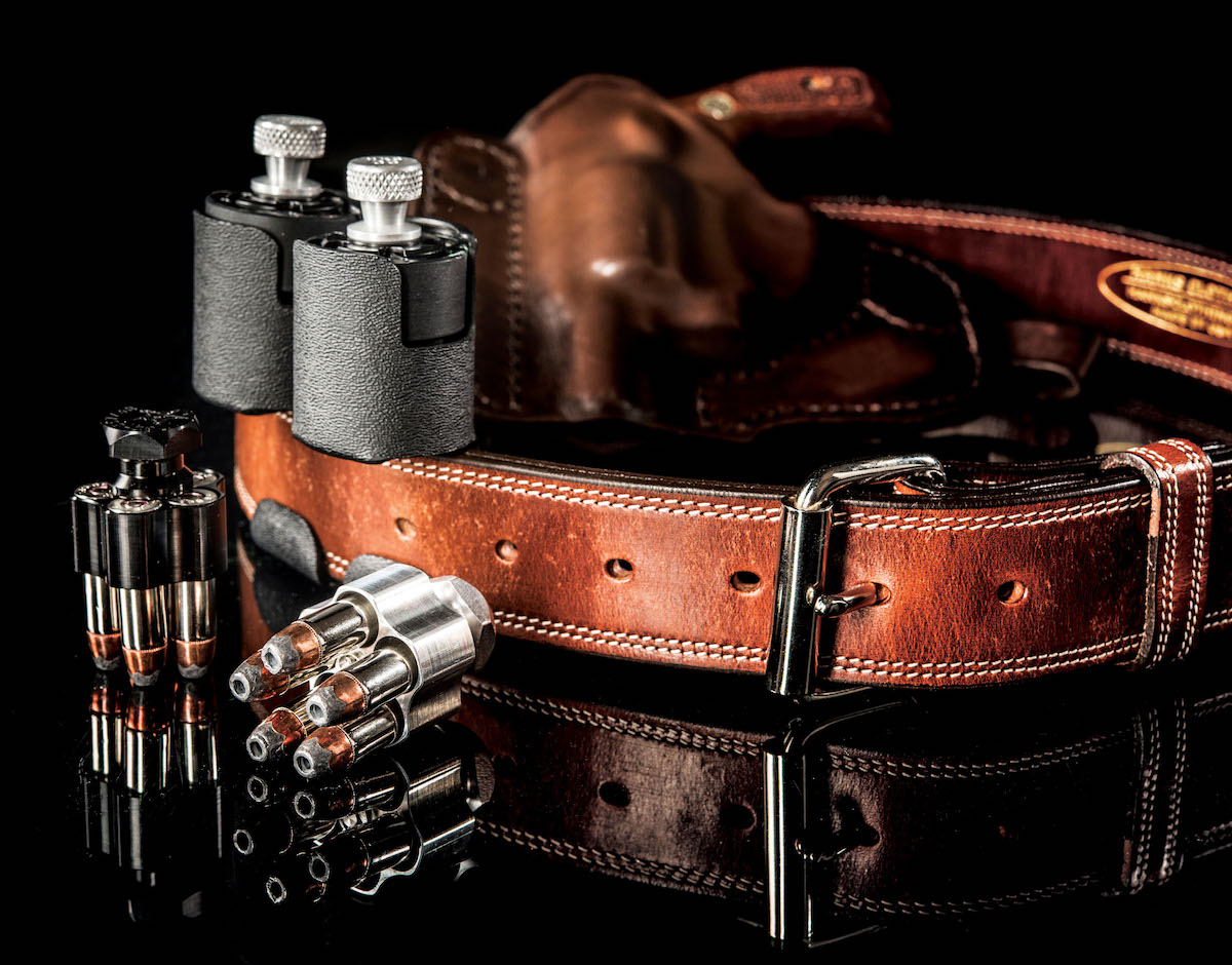 Usually, the speedloader requires a twist or push of a knob to release the rounds, and they’re best carried on some kind of purpose-built belt pouch. You can also carry a loaded speedloader in your pocket but it’ll print, looking like you’re carrying a golf ball. Though it ought to go without saying, make sure to function-test your speedloaders before carrying them; some cylinders may not provide enough clearance from the frame of the gun or the cylinder release to allow a speedloader to function effectively.