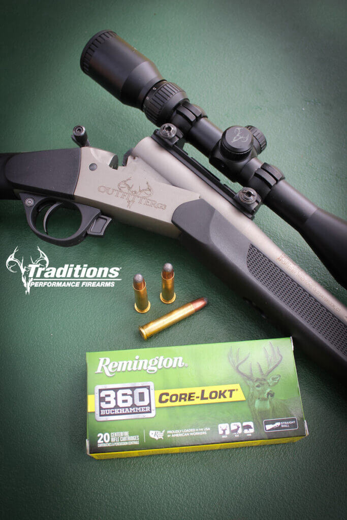 Alison Hall, Marketing Manager for Traditions®, says “Teaming up with Remington Ammunition to offer the 360 Buckhammer caliber in our Outfitter G3 line was an easy decision. We offer many different calibers but 360 Buckhammer truly offers shooters the terminal energy, reduced recoil, and performance they need. The Outfitter G3 is known for being extremely accurate so when paired with 360 Buckhammer it’s a deadly combination. I’ve seen this first hand with personal experience in the field.”