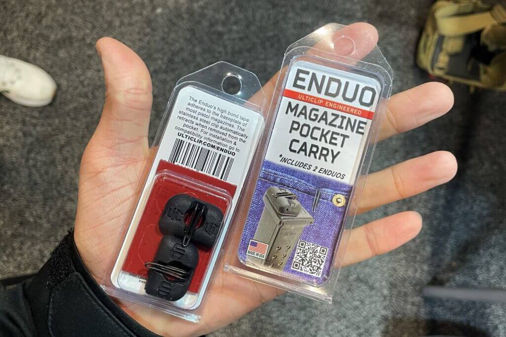 On the SHOT Show floor, UltiClip showcased updates to its Enduo magazine carry lineup. The booth focused on the Enduo Universal alongside newly released magazine-specific baseplate models.