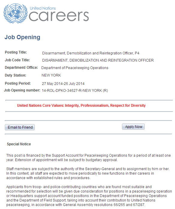 What we do know is that if you look, the road map is becoming clearer. This week the United Nations posted a job opportunity for “Peacekeeping Operations for a period of at least one year.” They call it DDR, or DISARMAMENT, DEMOBILIZATION AND REINTEGRATION. It is for an officer, to supervise the storm troopers.