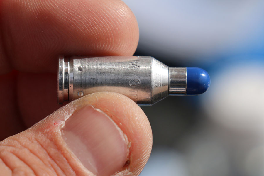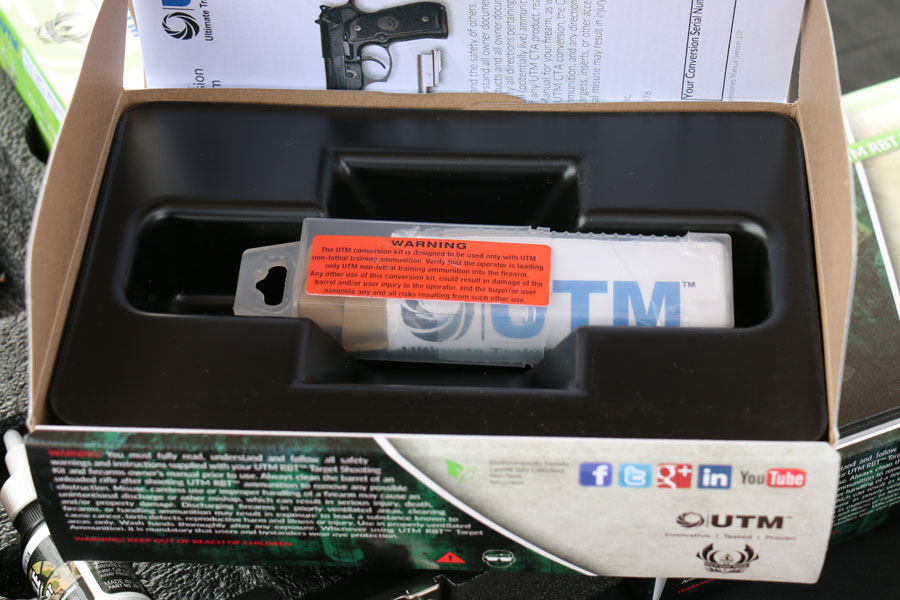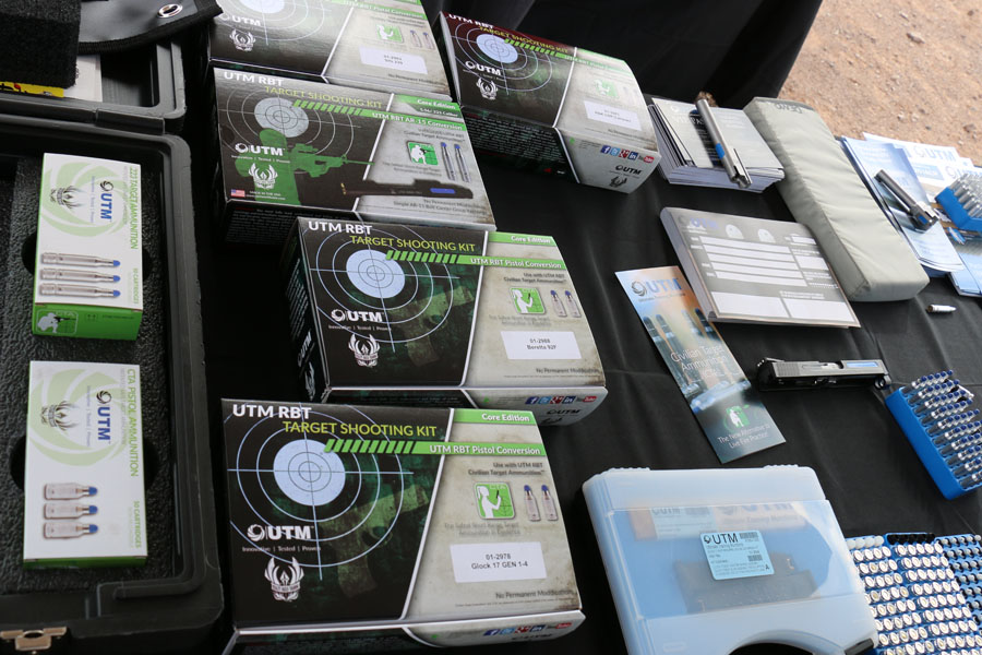 I didn’t get a chance to chronograph any of these rounds, but I was told that they are traveling at about 375 feet per second. Without getting technical, UTM uses a proprietary method that involves two ignitions versus the typical single ignition on other rounds. What this means is that consistency velocity is maintained on every round fired with enough energy to cycle the slide, without the projectile reaching velocities that can puncture the skin.