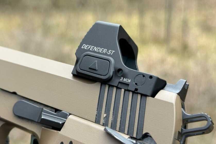 I think the new Vortex Defender-ST is proving to be a solid option for everything from EDC to competition shooting. This red dot has an MSRP of $469.99 and should have a street price of around $330. It also comes with a Picatinny mount right from the factory. The red dot utilizes the common DeltaPoint Pro footprint and features a large clear window contained in a rugged housing. Add in a top-loading battery, tactile adjustments, a unique front Fast-Rack™ front face, and good durability, this is a solid-performing optic at a competitive price.