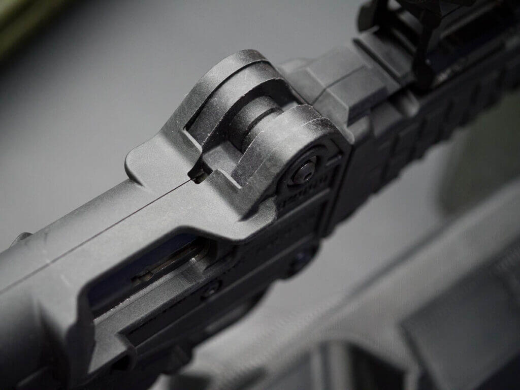 KetTec listened to all the feedback and redesigned the Gen 3 so that the forend twists 90° when folding. That means the Picatinny rail and anything on it are no longer smashed when the gun is folded.