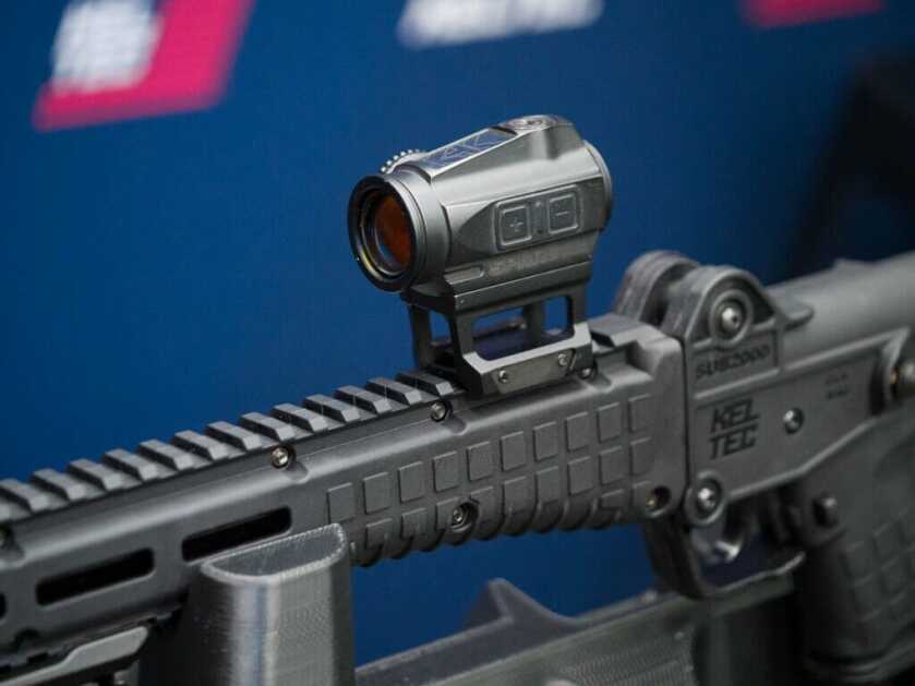 The Sub2000 has always had a full-length Picatinny rail, but anything mounted to the rail — like a red dot — would be smashed when the gun is folded in half. Since folding is its primary feature, most of us relied on the included iron sights.