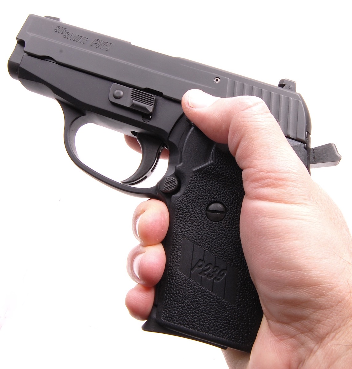 Similar to reliability, whether a gun is made from plastic or metal doesn’t necessarily factor directly into its accuracy, but there’s something about metal that contributes — or at least doesn’t adversely affect — accuracy. The P239 is a little heavier (more on that below) which contributes to just a bit less movement when aiming and a bit more recoil absorption when firing — both of which can aid in accuracy. And for sure the shooter has to do his or her part in knowing how to draw, aim, and fire this gun. But the gun’s balance, it’s ultra-smooth trigger stroke, clear sights, and heft all help to make the most of every shot.