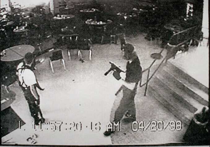 This is a screen grab of Eric Harris and Dylan Klebold. These two dirtbags brought school shootings into the Information Age. Their weapons were already illegal, incidentally.