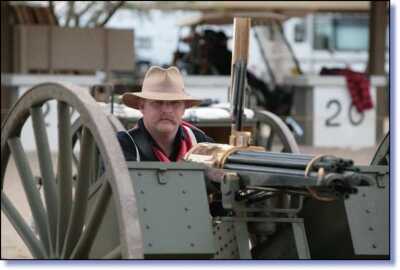 Finally, the big day is here. Overnight, a western town has been created at the Ben Avery Shooting Range in Phoenix, Arizona. The dusty streets are filled with vendors, sponsors and merchandise, and about 650 participants aka cowboys, cowgirls, desperadoes, buckaroos, miners, muleskinners, soldiers, soiled doves, and rapscallions of all sorts who are set to have a good time. After the opening ceremonies, the canon roars and the party begins.