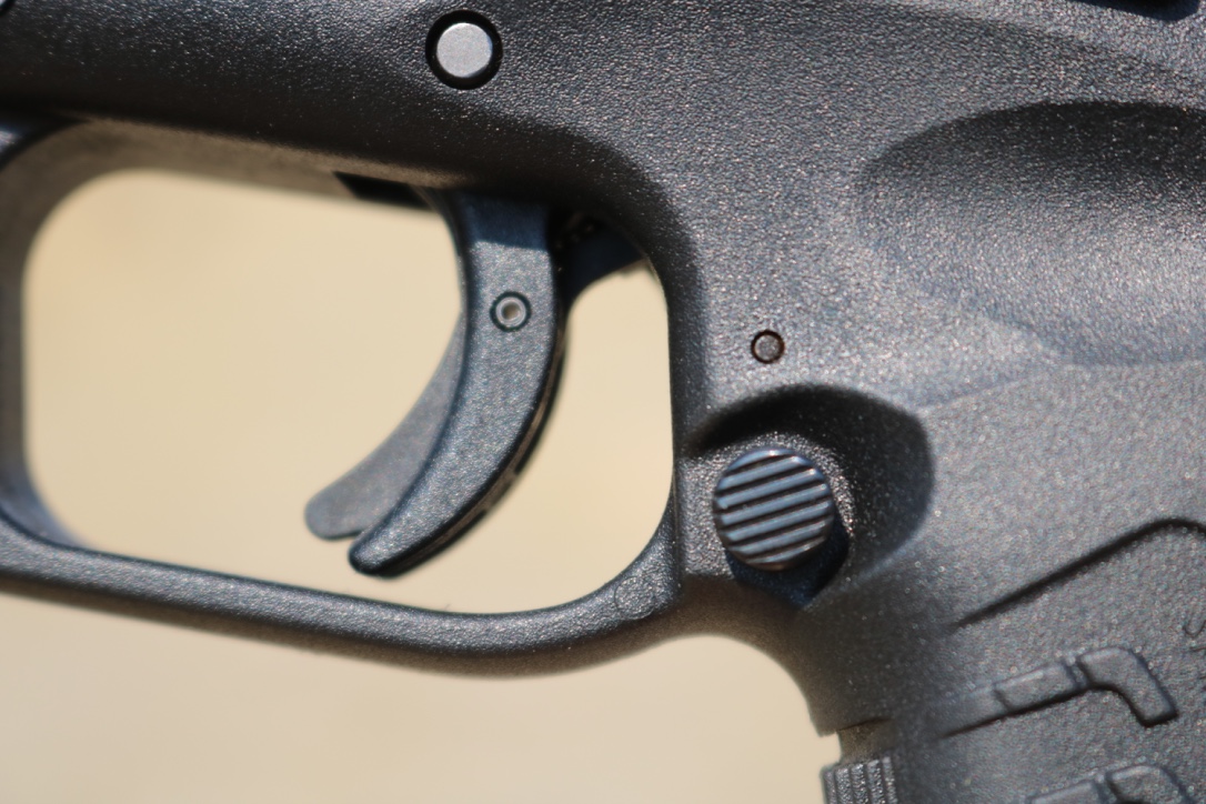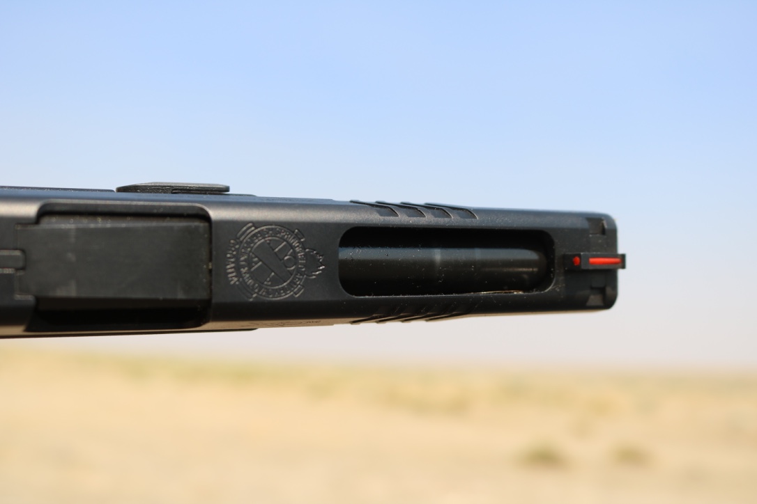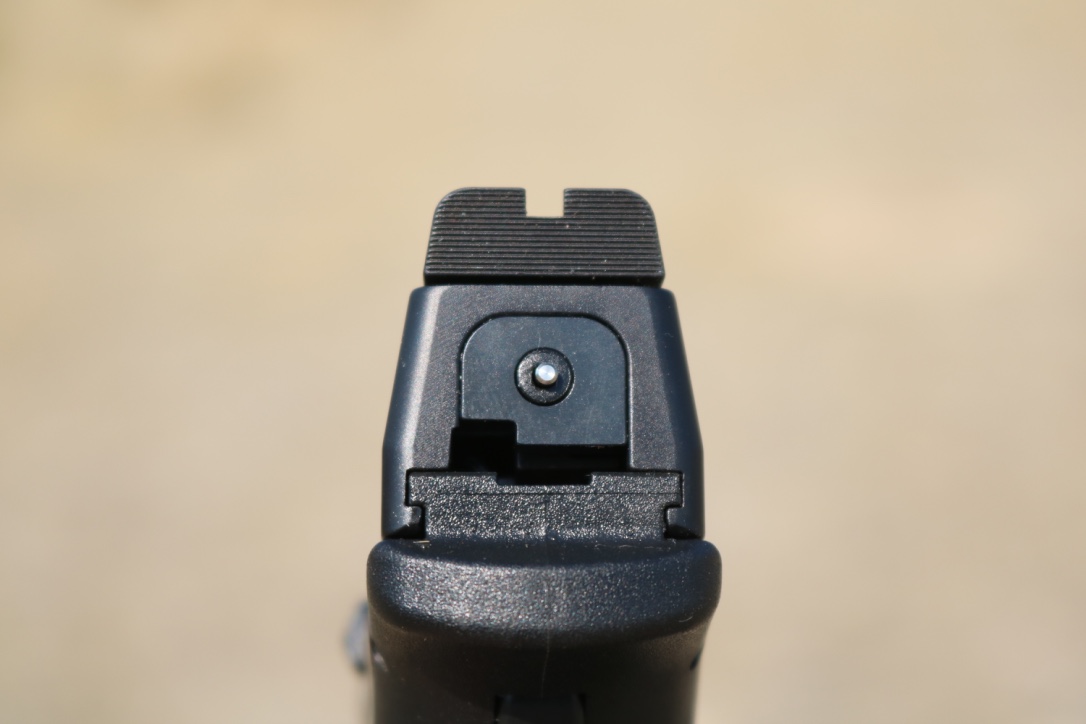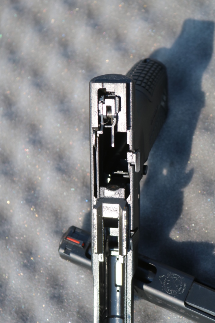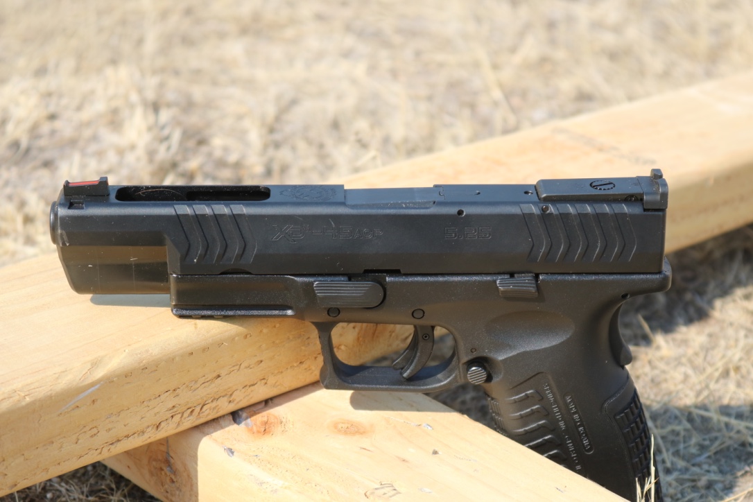 The slide has cocking serrations front and rear, along with Springfield Armory’s excellent front fiber optic sight post. The rear is unique to the 5.25’s, with an adjustable sight cut deeply into the slide. At first glance, the rear notch looks smaller on the 5.25 than the 4.5, but it is an optical illusion. It is the same width, but 2 mm shorter in depth. Which basically doesn’t matter. The 5.25 rear is also flat black without the white dots of the 4.5, which I prefer.