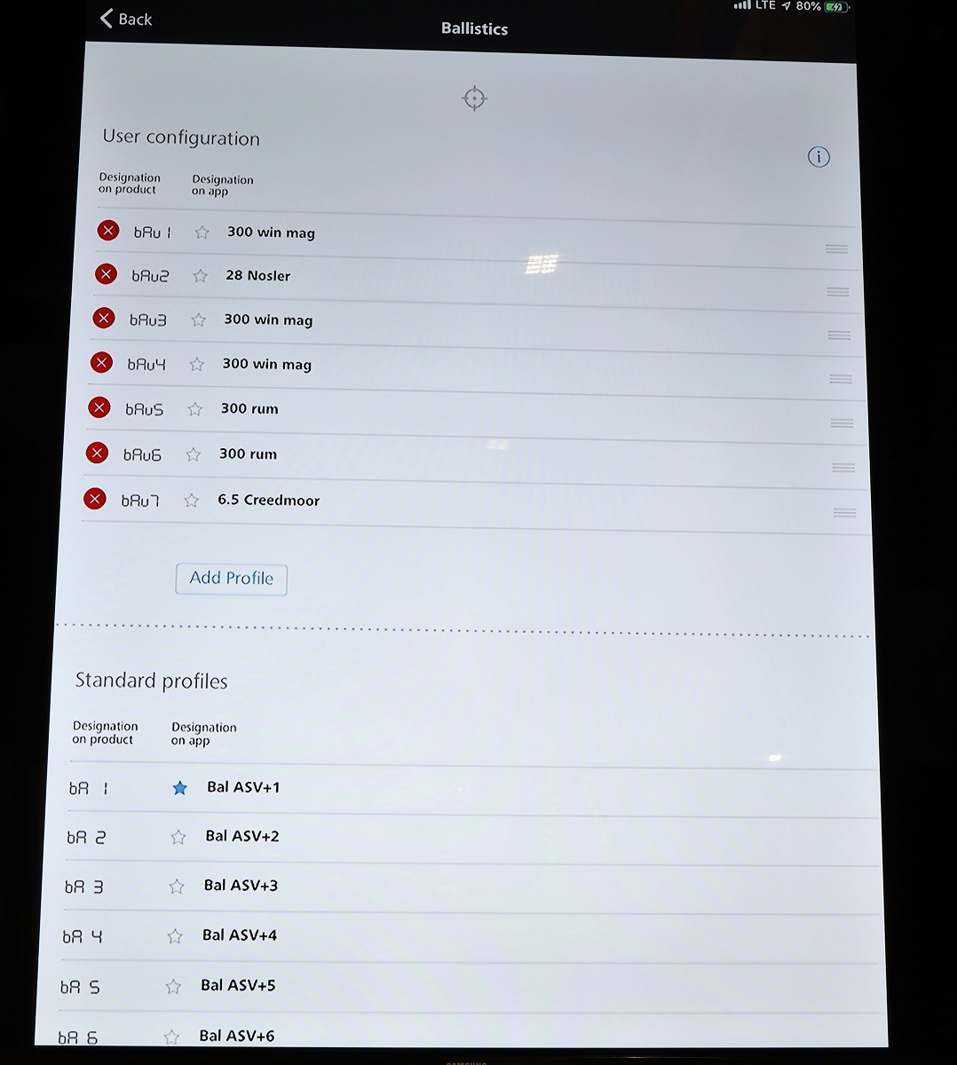 The Zeiss Victory RF stores up to nine user selected ballistic profiles in the binoculars themselves