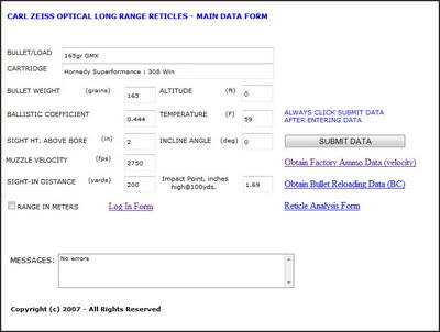 The Zeiss site is horrible. I entered all my data, hit “submit data” and nothing happened. I’ll stick with the Nikon Spot On ballistics calculator site. At least it works.