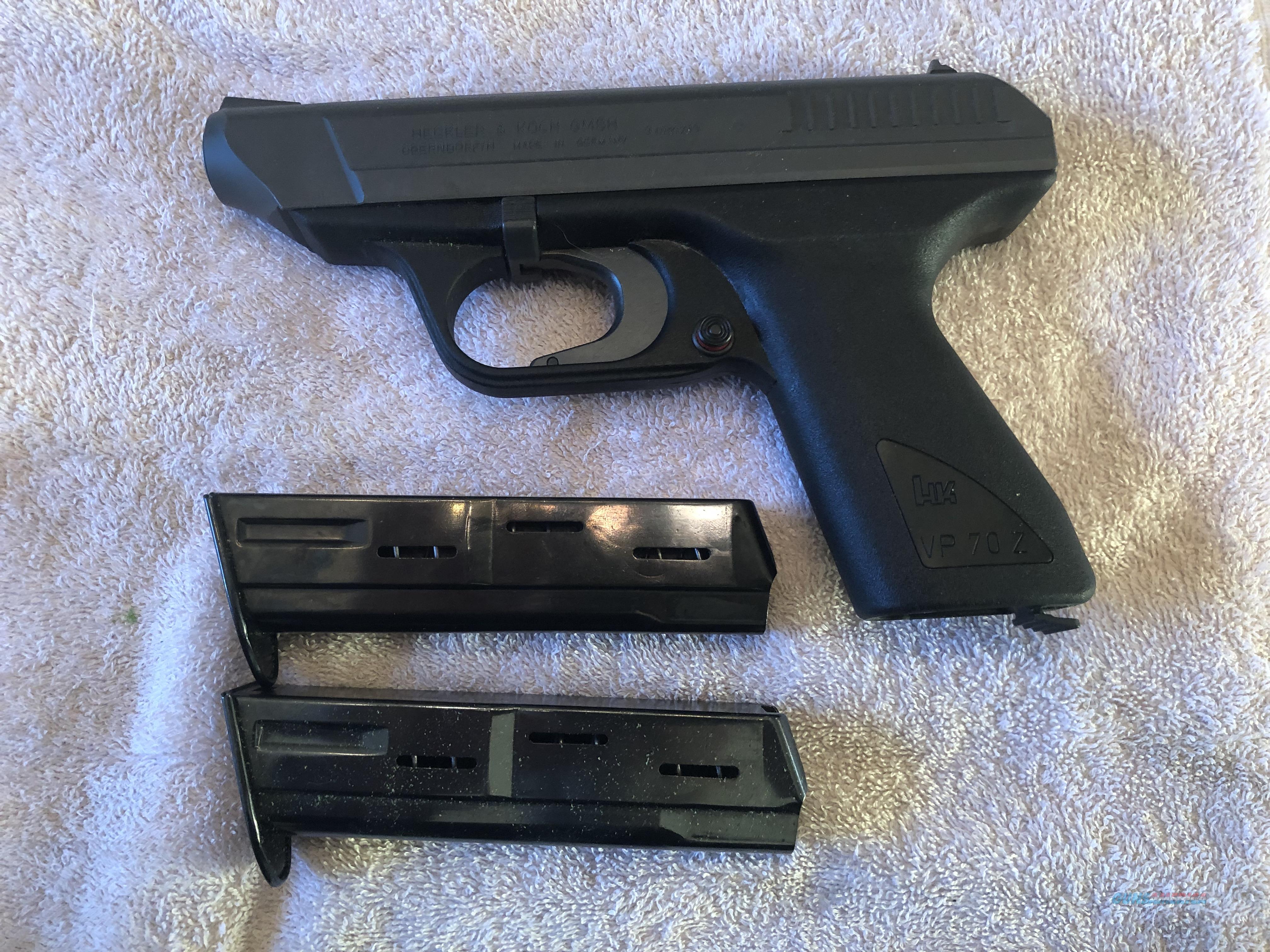 Items Available For Purchase Today Object reference not set to an instance of an object. See All H&K VP70z For Sale from: J Weiss | No feedback Yet View | | 1 Completed Sales View Sellers Items H&K VP70z For Sale from: J Weiss | No feedback Yet View | | 1 Completed Sales View Sellers Items J Weiss Seller Since: May. 2013 Identity Verified ( Montgomery, AL ) This seller is NOT an FFL City: MONTGOMERY State: AL Current Price: ENDED - $650.00 Min. Bid: Time Left: (Auction Ended) Shipping: Calculated on checkout Accepted Payment Methods: Returns: No Returns Description: Like New H&K VP70Z This is an 18 rd. pistol with a polymer frame. The first polymer-framed pistol and predates the Glock 17 by 12 years. The VP70 uses a spring loaded striker like a Glock, instead of a conventional firing pin. It is double action only so the trigger pull is heavy. In lieu of a blade front sight, the VP70 uses a polished ramp with a central notch in the middle to provide the illusion of a dark front post. The VP70Z was manufactured by German arms firm Heckler & Koch GmbH. The VP70 was produced from 1970 until 1989. VP stands for Vollautomatische Pistole ("Fully automatic pistol"), and the designation 70 was for the year of the first edition: 1970. Z is the civilian single-shot mode Purchased over 30 years ago and never fired. I do not believe that the individual that I purchased the pistol from fired it either Original Box, 2 magazines, owner's manual, factory target Condition: Used, As New Brand: H&K Model: VP70z Caliber: 9mm Luger Item #: 980408781 UPC: 642230250857 Location: AL Trades Accepted: Share: Shipping Notes: See Description Items You've Viewed Recently Desert Eagle 41 Mag, 6" and 10" barrels $880.00 SELLER: trenace Add To Cart MP-40 9mm German Schmeisser $15999.00 SELLER: First Stop Gun (FFL Dealer) Add To Cart Sig Sauer P220 9mm Pistol **USED** $450.00 SELLER: PERRYS GUN SHOP (FFL Dealer) Add To Cart Colt .357 Magnum Python Revolver. Royal ... $7500.00 SELLER: FAMARS USA (FFL Dealer) Add To Cart