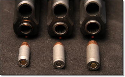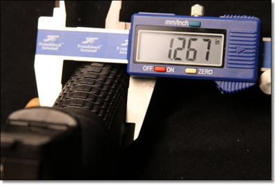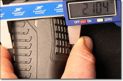This is the width measurement of the .45ACP. It measures 2.104 inchest, and the other guns measure 2.085 inches. This is a very small difference but you can feel it in your hand with the medium inserts.