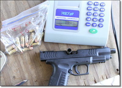 Since these guns were built for competition I elected to only test them with Hornady Steel Match. The published velocity on the 9mm is 1146 feet per second. I measured the it in the 9mm 5.25 at an average of 1114. The .40S&W is published at 950 and the actual averaged 1010. And in the .45ACP the published is 850 and the average measured 788 out of my Pact Pro Chronograph. These work out power factors of 139.5, 181, and 181 respectively.
