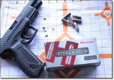 Making major power with the 9mm is from what I have seen impossible. But in the .40S&W, the minimum velocity for that 180 grain Hornady HAP (Hornady Action Pistol) bullet is is 944 fps. This is below the published velocity of Steel Match, and well within normal reloading tolerances for the caliber. The .45ACP cartridge is capable of easily making the 160 or 170 major power factor with most available loads, and you can experiment with the gun to find the load that works for you.