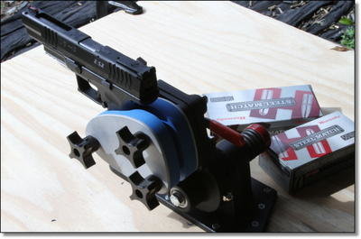 The Ransom Rest is an invention that is meant to replicate the gun in a human hand throughout the firing and recoil cycle. You lock the grip of the gun in molded pads for that particular gun, and the device is meant to be a “machine rest,” to test the actual accuracy of the gun as a functional tool, with human factors completely removed. It kinda works, but not like you’d expect. For some guns my Ransom Rest results are much better than on sandbags, but on other guns the improvement is only marginal, and there are clearly flyers.