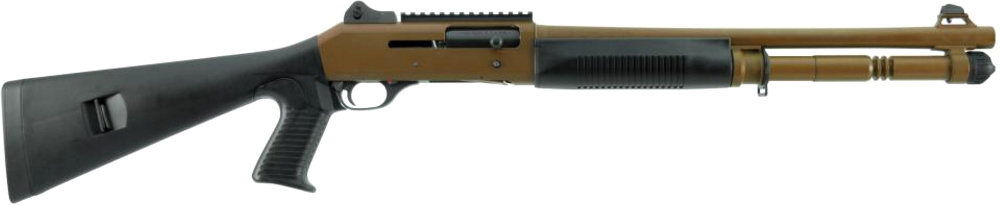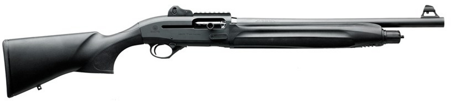 Built around Benelli’s ARGO or auto-rotating gas-operating system, the shotgun has dual gas pistons that provide excellent reliability in the worst conditions. It features Benelli’s interchangeable ghost ring sight system, has a rail for optics and is threaded for chokes.