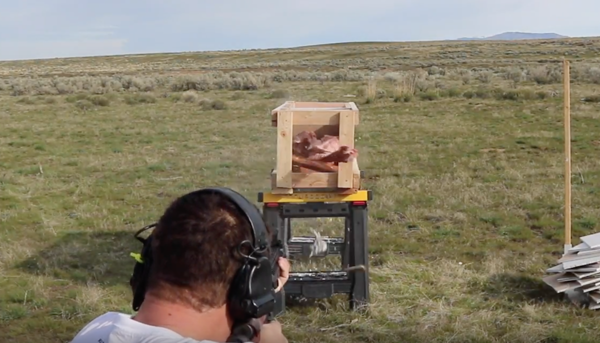 The author set up a box with 11 layers of drywall and also put meat in front as a testing medium. Check out the video for the results.