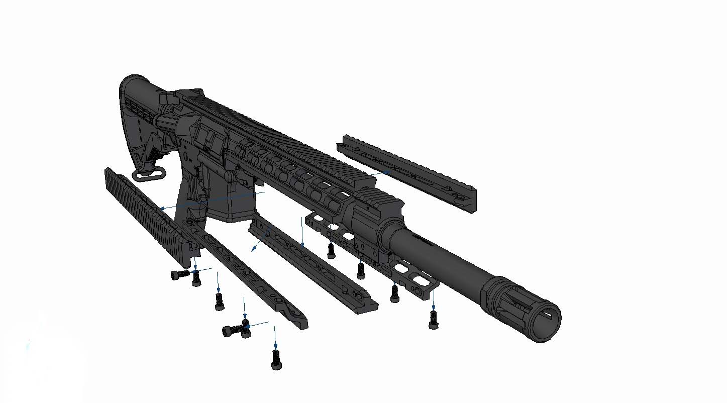 The unique feature of the Mod-1 is that it has a monolithic upper, and this proprietary sloping rail design, with removable rails.