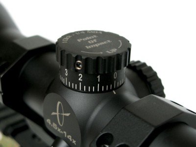 Burris C4Plus Left Profile – The Burris 4.5-14X42 felt at home on the AR-15 that I used for testing. Its generous eye relief mean that I didn’t have to crowd the stock to get a nice clear sight picture when I dropped down behind the rifle. That small nub that is protruding from the left side actually puts tension on the erector spring to ensure consistent, accurate adjustments. Although some people may feel the need to see if they can adjust it, it should never be messed with since it could permanently damage the scope.