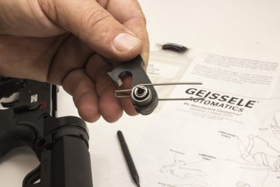 So, do you have to be a gunsmith to install it? In a word, “no.” If you have a working knowledge of the AR-15 rifle, you can easily install the G2S. The trigger comes complete with all the needed pins and springs. In reality, the only things you will need for installation is a punch and possibly a light soft-surface mallet. While bench blocks and work stations are handy, they are not ultimately required for putting your new trigger in if you do not have them (and do not want to make that investment). A clear, clean surface and good lighting will round out your installation requirements. On a special note, Geissele includes a unique locking device that installs on the hammer. This design keeps the hammer pin from walking out during heavy use without the need for aftermarket pin retention devices. See below for full, step-by-step installation guide.