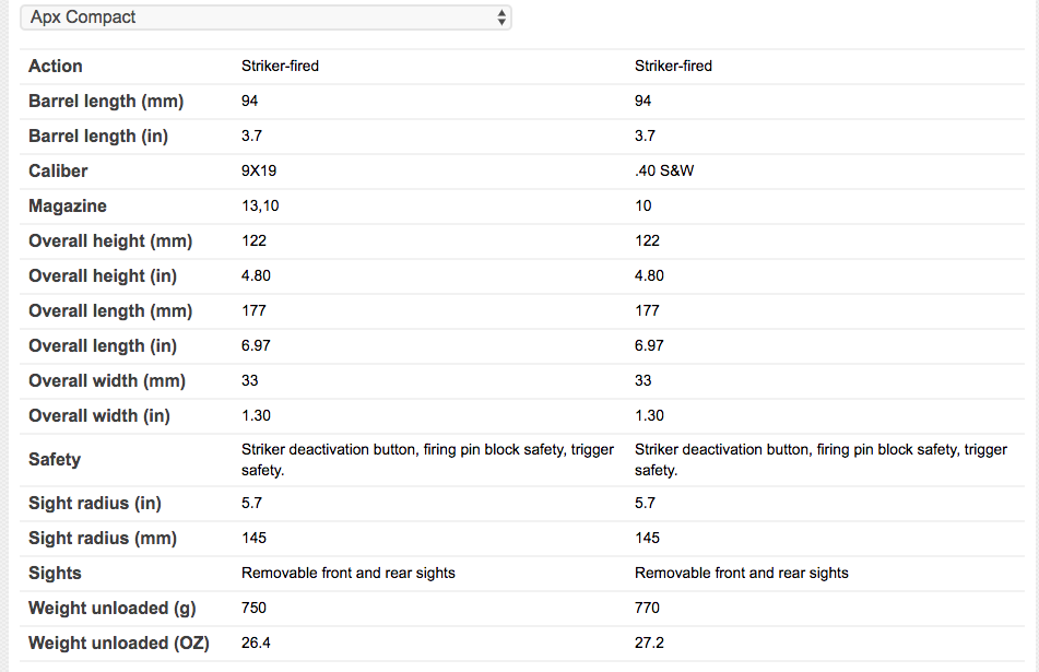 The APX Compact is the perfect conceal carry double stack pistol that does not skimp on fully filling out the palm, or skimping on the barrel length to compensate for balance. Hope the clears up everything that was missing from the article.
