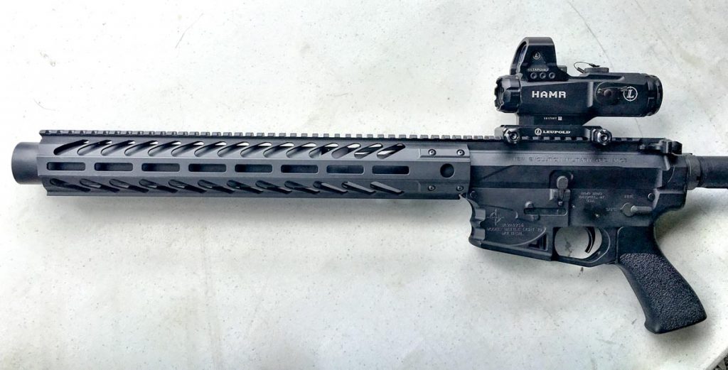 I had the opportunity to shoot both versions of the upper, the 5.56mm and the 300 Blackout. One word: fun. Both are hearing safe with the 5.56mm model measuring about 131 dB at the shooter’s ear and the 300 Blackout ticking off 128/129 dB using subsonic ammunition.