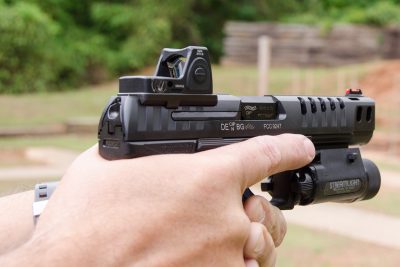 One of the most noticeable differences you’ll encounter when installing an optic on the Q5 Match is that the gun has no rear sights once you swap in the optic plate. I’ve run several handguns with optics and rear sights simultaneously, and I have yet to find a pair of sights that work with an optic installed, due to the height difference between the sight and the optic. Some manufacturers offer an integrated mounting plate that features a tall rear sight. After going to the trouble and expense to install these types of fixes, I’ve never found a setup that will truly co-witnesses like a long gun. My best advice is to rely on either the red dot or your iron sights, because trying to make the handgun work like a carbine is going to end up being a fool’s errand. I am quite sure that people will try to make this out to be some type of failure on the part of Walther, but I see it as an acceptance of the realities that are created by installing an optic.