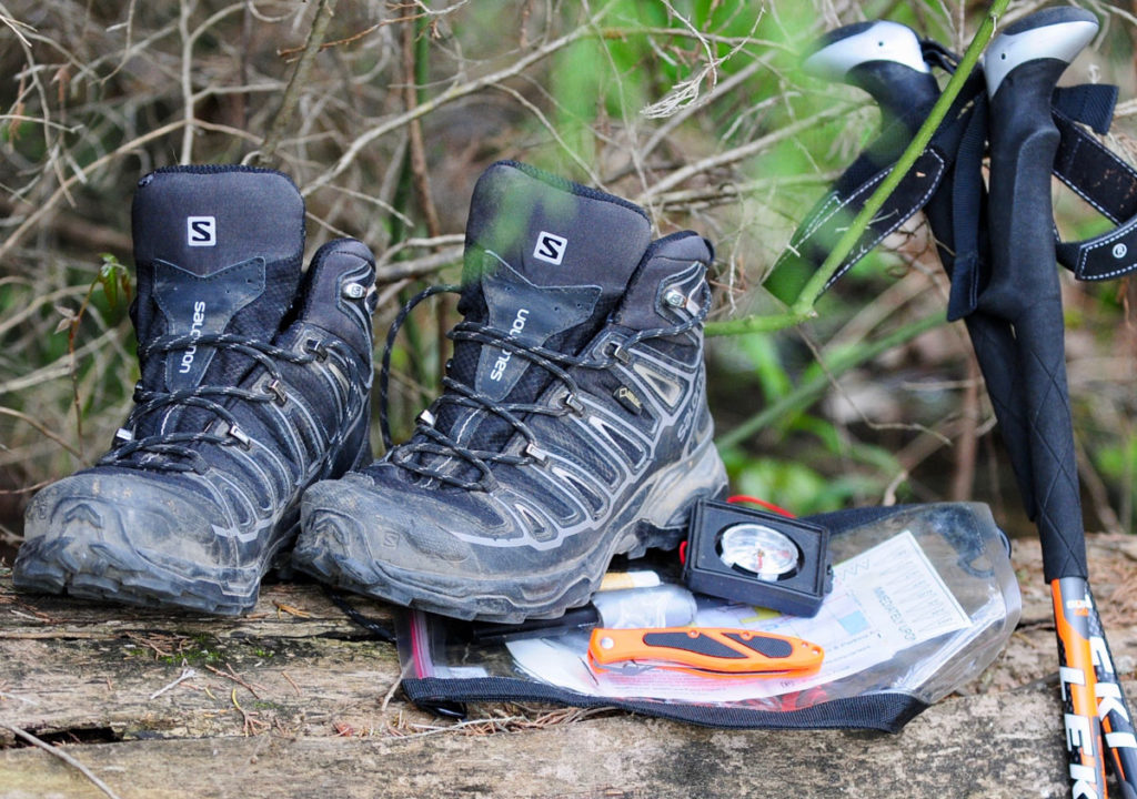 Salomon mid-height boots and a set of trekking poles are a winning combination for rapid movement and less fatigue.