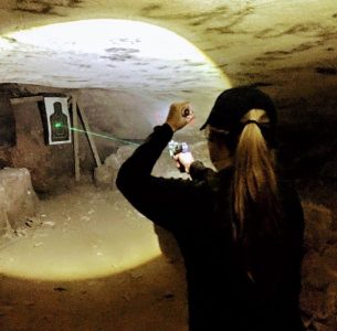 I’ve trained on my local range with my Glock 19 with a light and laser combination at night. However, when in a cave there’s a stark realization of how much a light/laser combination aids in vision. Rockcastle is a large facility that encompasses several long-range ranges, a golf course, a hotel, a 2nd Amendment Community and several caves — one that has a shooting range. With our Danner boots laced up, we cruised to the caves in the new Honda Pioneer 1000.
