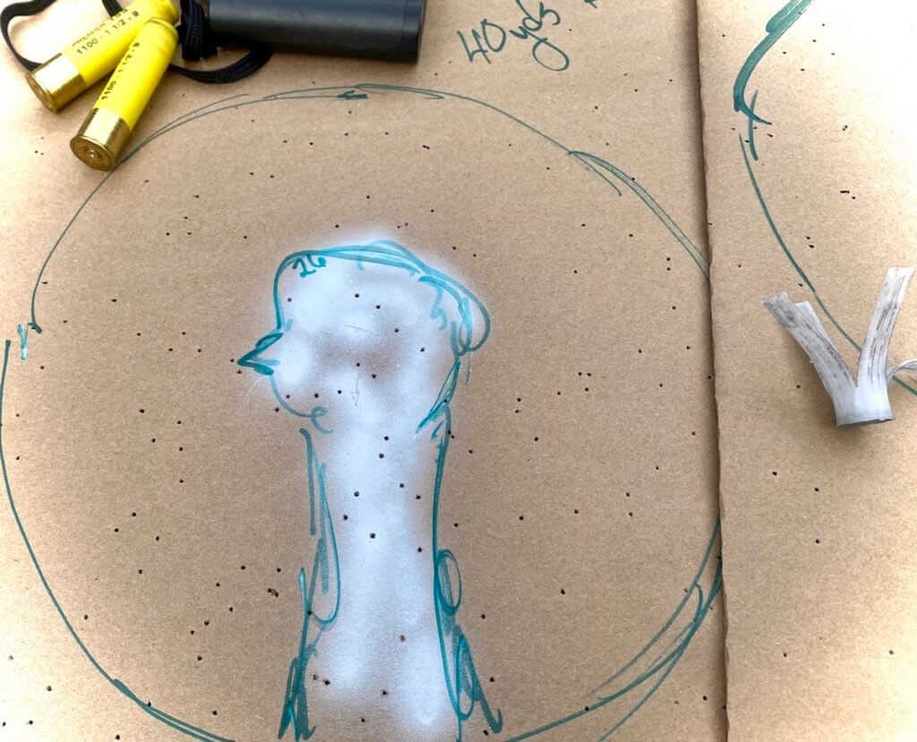 At 40 yards the Remington TSS put 123 #9 pellets in a 10-inch circle, including the 26 in the head and neck of my hand-drawn turkey. That’s way more than what’s needed to kill a big tom.