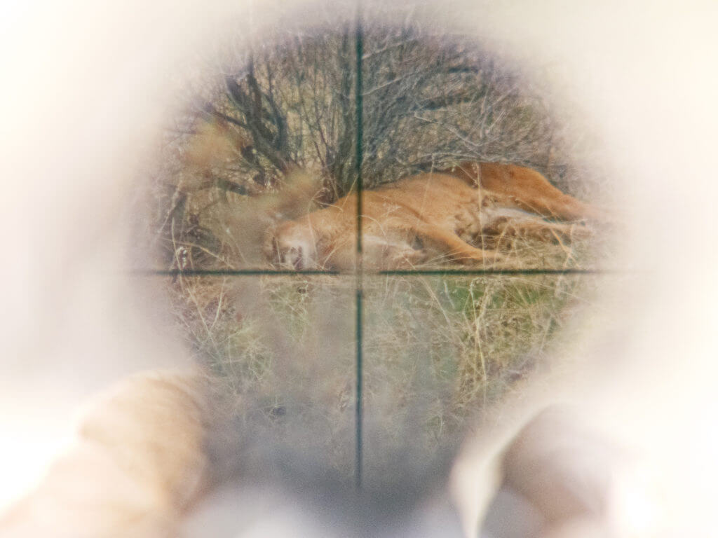I edged around the hill into the view of the draw on the other side and stopped to look around with mountain mahogany covering me from view. I looked down the slope and my heart jumped into my throat as I saw a huge red fox lying under a bush. Its orangish coat was in stark contrast to the blue-green and gray of the sage and brush. Now I really wished I’d grabbed the rifle because foxes don’t require a tag to hunt.