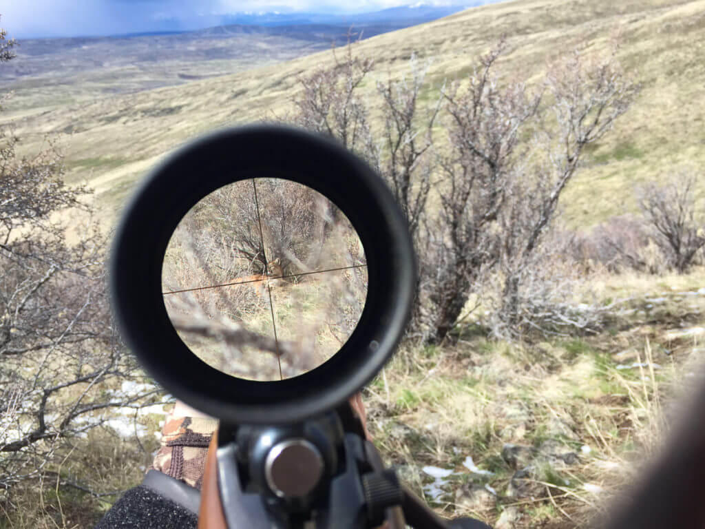 Ryan and I had been in one spot for a couple of hours, glassing through three intervals of sunshine and sudden snowstorms, and decided to take a break. Ryan stood and walked up the hill to warm up, and I called after him that he should take his rifle, but he didn’t hear me. I stood and walked to the right around the hill, thinking I should probably take the rifle, myself, but also knowing that I didn’t have any tags in my pocket.