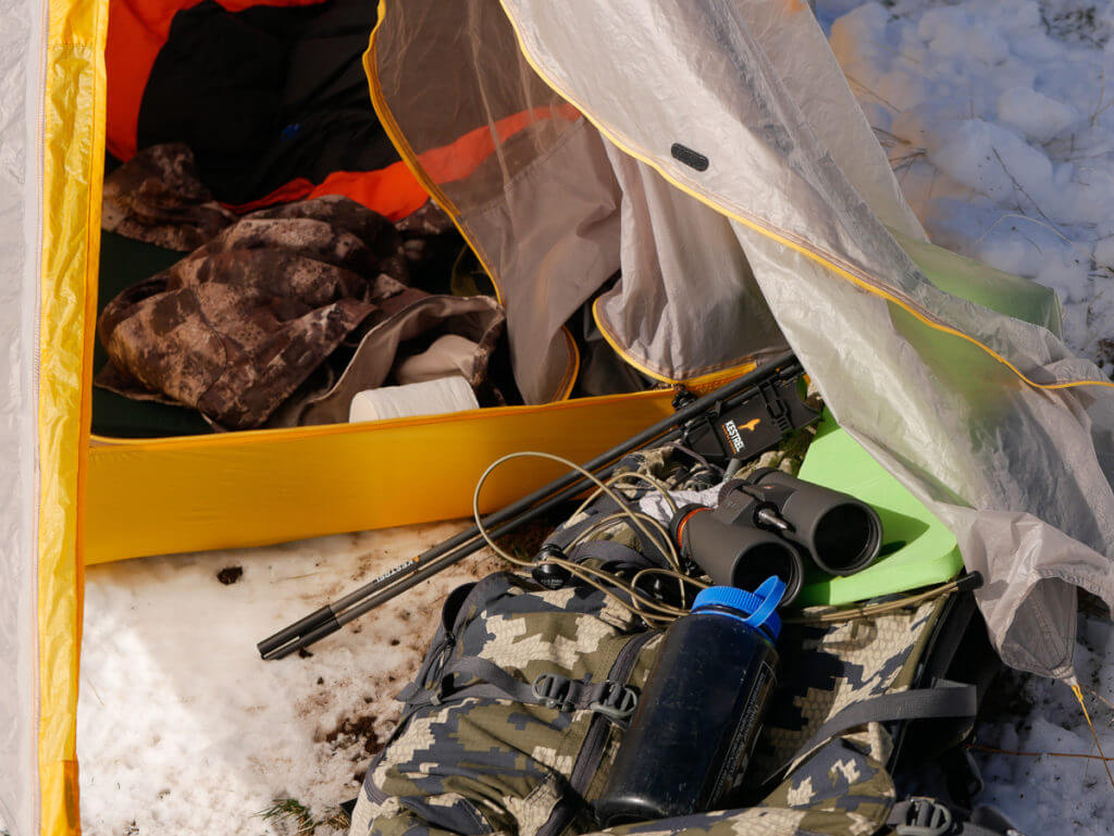 I brought the brand new Kestrel Glassing System. It’s a remarkable tool. It gives you 90% of the stability of a tripod, but it’s much easier to use and it only weighs six ounces. It’s got only one foot and you can swing and pivot and tilt all over the place without moving legs or adjusting three knobs on a tripod head. It makes glassing for hours a lot less strenuous and a lot more effective. At 6oz, it’s so light that I didn’t feel it on my pack and it’s so quick to deploy that I used it continually.