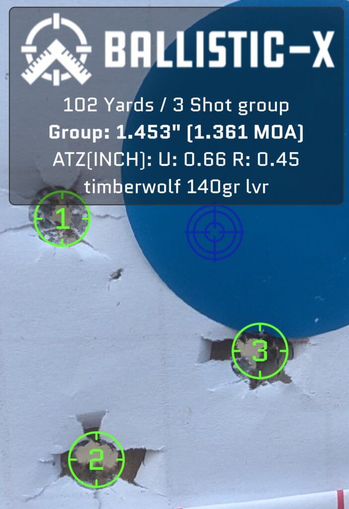 I was able to hit a 10-inch diamond steel target about 75% of the time using an older Aimpoint Comp XD with a 10 MOA dot. With that kind of accuracy, shooting a 2 or 4-legged predator inside 100 yards is simple and is still very doable at 200 yards. Though I prefer a red dot for most rifles inside 200 yards the Timber Wolf is an ideal host for a 1-4 LPVO optic. With a 1-4 it routinely produces 3 shot groups at 100 yards under 2 MOA.