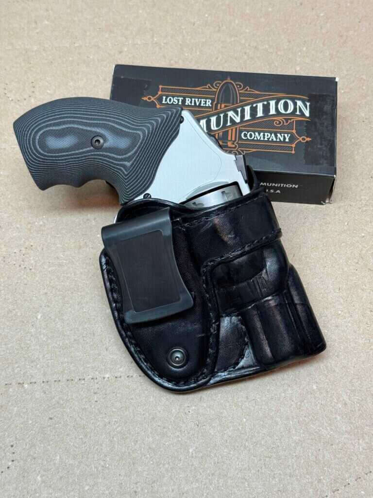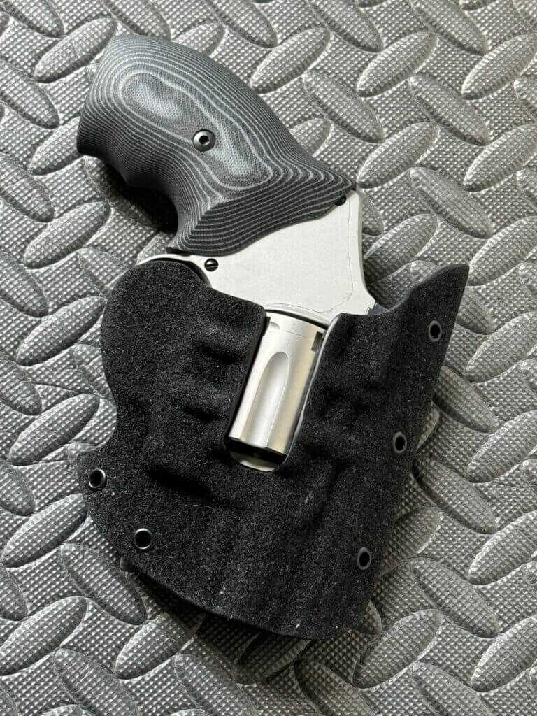 The Bulman Pocket Pal is a well-designed kydex holster that is molded to be compatible with the shrouded barrel and new sights found on the UC.  The cylinder cutout reduces overall bulk.