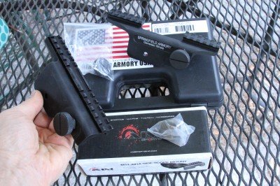 Snooping around on Amazon I discovered that the Springfield mount, which is more like the US Military mount, has been copied. You basically can buy the same mount for like $20, with free shipping on Prime. So much for spending $125 on it, but is a small difference between the Springfield mount and the $20 mount. On the Springfield mount there is a space between rail sections and the $20 mount has one solid rail. I didn’t have any issues with ejection using either mount, so I don’t know if it is functional or ascetic.